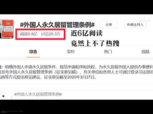 - ↑ 微博:外国人永久居留条例?我反对. m.weibo.cn. [引用时间: 2020-02-28].