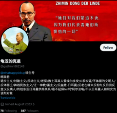 尽管Ciszewski的账号被安森爆破了,但韩致君的大部分资料还保存完好(虽然前后也被爆破了好几个知乎账号)。搜素韩致君005的想法网页,共出现了约80次“Cis”(排除racist)。而且Constantinople猫也提供过其推特账号,[49]连推特简介都与Ciszewski高度一致,可能思想也是最为贴近Ciszewski的。所以我们可以以韩致君为例从中窥见“日耳曼学”的早期形态。