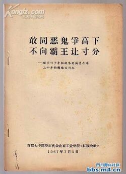 其實,這不是薄熙來第一次引用這首詩。這番發言引發網民的興趣和查考。有網民貼圖指出,「敢同惡鬼爭高下,不向霸王讓寸分」是一本1967年7月5日由「首都大專院校紅代會」所編書籍的正標題,副標題是「記與劉少奇叛徒集團英勇鬥爭30年的韓培義同志」。
